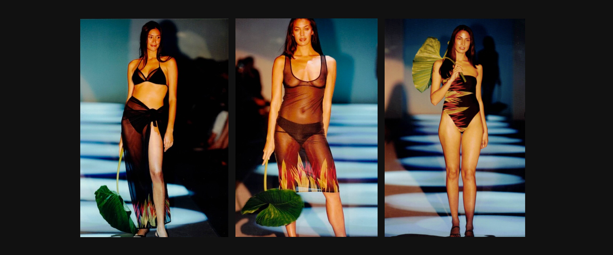 The Strelitzia print collection in our latest limited release capsule was originally custom made by designer Claire working with close friend and photographer Daniel Lunghi. The creatives photographed a stunning selection of fresh tropical flowers in his Nedlands studio transforming the imagery into a custom print on soft draped mesh. The lush oasis of florals against a rich colour palette filled the runway of Australian Fashion Week 2000, opened by supermodel Megan Gale. Models walked to the sounds of trickling waterfalls and the melodic wildlife of the Daintree rainforest.